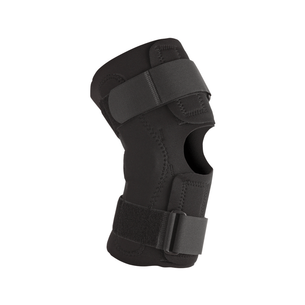 Η επιγονατίδα neoprene ανοιγόμενη “Wraparround Hinged knee Support” της Ossur είναι κατασκευασμένη από νεοπρένιο 3 χιλιοστών. Είναι ανοιγόμενη και κλείνει εύκολα με αυτοκόλλητα velcro. Διαθέτει δυο σταθεροποιητικούς ιμάντες στο επάνω και το κάτω μέρος. Διαθέτει οπή στην επιγονατίδα. Τα πλευρικά ελάσματα διαθέτουν αρθρώσεις, ώστε να διευκολύνεται η κάμψη του γόνατος. Προσφέρει πολύ καλή πλευρική στήριξη. Είναι υποαλλεργική. Πλένεται.