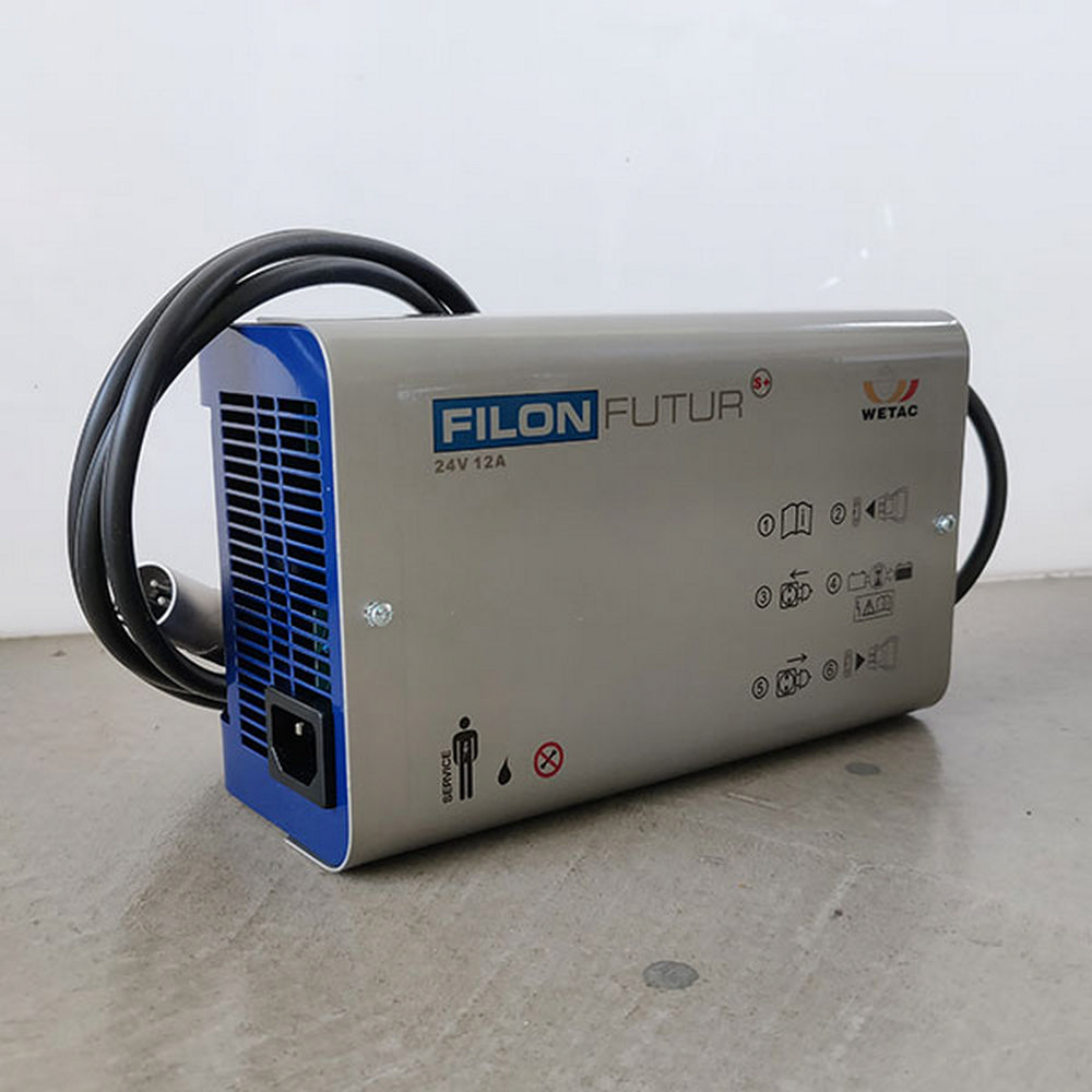 Οι φορτιστές FILON FUTUR της καταξιωμένης WETAC είναι κατάλληλοι για την φόρτιση των μπαταριών ηλεκτροκίνητου αμαξιδίου ή scooter. Οι τέσσερις ενδεικτικές λυχνίες LED δείχνουν την πρόοδο της φόρτισης καθώς και τυχών μηνύματα λάθους. Ενσωματώνουν έξυπνο κύκλωμα προστασίας από υπέρταση και βραχυκύκλωμα. Τάση φόρτισης: 24V Μέγιστο ρεύμα φόρτισης: 12A Φορτιστής κατάλληλος για μπαταρίες τύπου: AGM, Gel, Li-Ion. Διάσταση: 217x130x85mm Βάρος: 1,5 Kg...