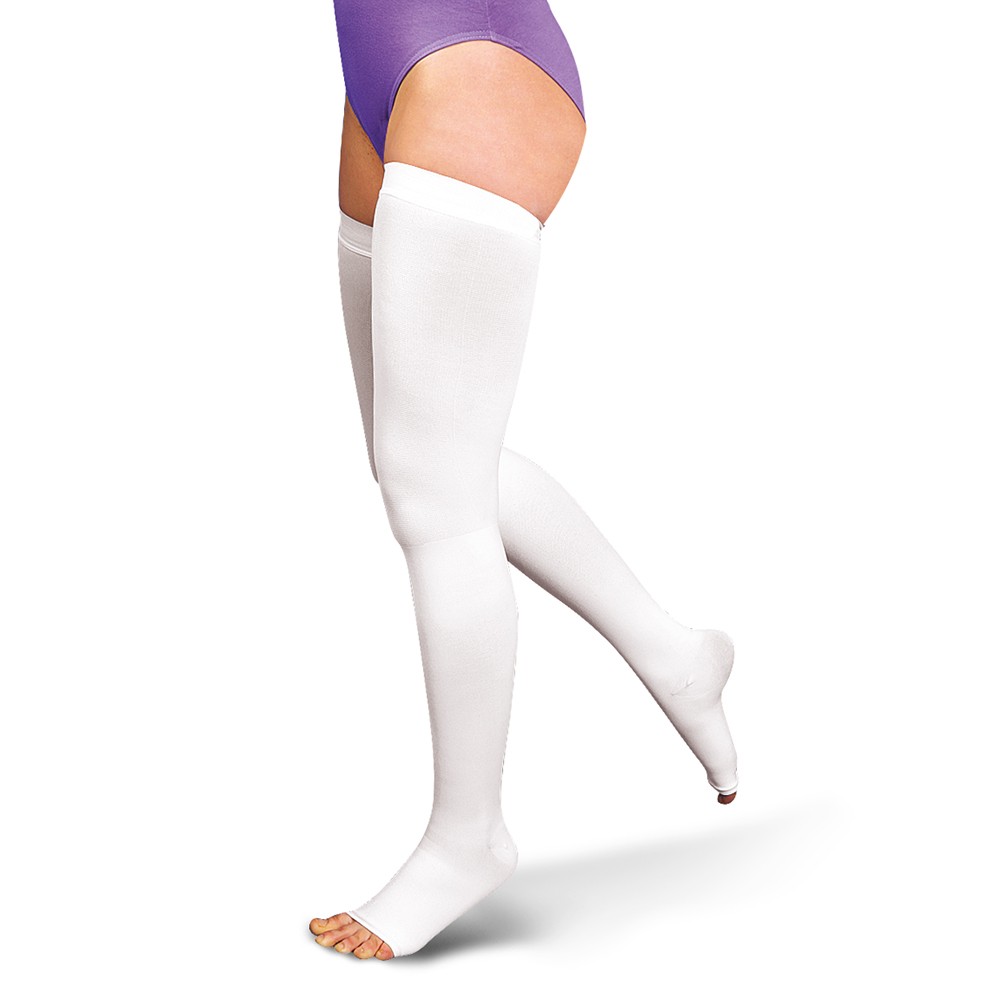 Κλινικά σχεδιασμένες για την πρόληψη της θρόμβωσης πριν και μετά την χειρουργική επέμβαση. Είναι επίσης κατάλληλες για άτομα με μακροχρόνια κατάκλιση. Ανοικτές στα δάχτυλα. Η σωστή εφαρμογή στον μηρό επιτυγχάνεται με μία ελαστική φάσα σιλικόνης.