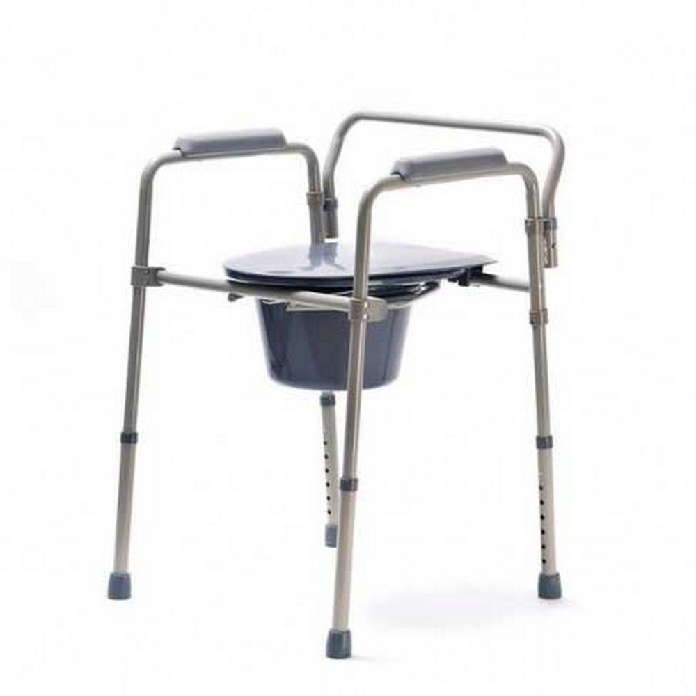 Ένα πτυσσόμενο κάθισμα τουαλέτας το οποίο μπορεί να χρησιμοποιηθεί με το δοχείο νυκτός που περιλαμβάνει ή να τοποθετηθεί πάνω από την λεκάνη της τουαλέτας. Χαρακτηριστικά: Πτυσσόμενο. Ρύθμιση ύψους. Μαλακά υποβραχιόνια. Ανθεκτικός σκελετός. Δοχείο νυκτός 5 λίτρων.